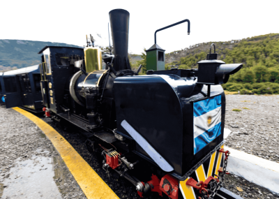 ウシュアイアから、8km西の鉄道駅から、ティエラ・デル・フエゴ国立公園に向かって、世界の果て号(トレン・デル・フィン・デル・ムンド)と呼ばれる、狭い軌道の蒸気機関車に引かれた観光列車が走っています。途中マカレナ駅で停車し、周囲の自然などを見ていただけます。この鉄道は、囚人たちによって作られ、伐採された木などを運搬するために利用されました。そのため、現在でも周囲は伐採により草原の景色が広がり、多くの切り株が残っています。