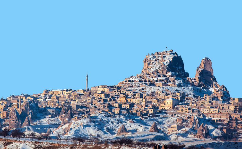 その後、無数の鳩の巣が岩壁に残るピジョンバレーを訪れ、カッパドキアらしい雄大な景色を写真に収めます。続いて、赤みを帯びた岩肌が美しいレッドバレー、奇岩と城塞のような景観で知られるウチヒサール、素朴な雰囲気が残るチャウシン村を巡り、絶好の撮影スポットをお楽しみください。