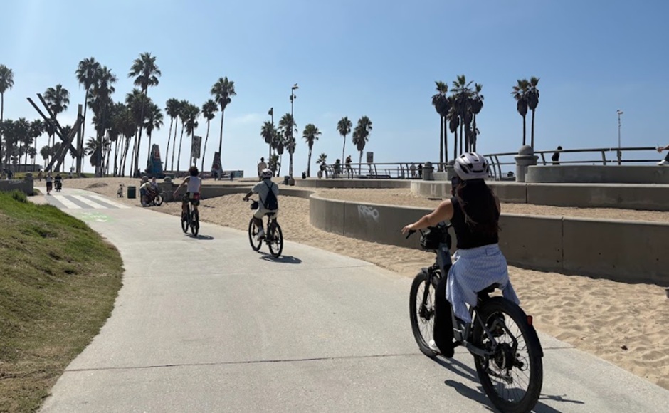 ロサンゼルスの人気ビーチエリアをEバイク(電動自転車)でサイクリング