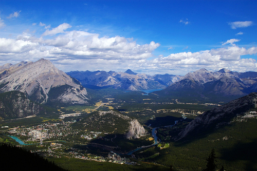 - サルファー山の頂上からカナディアンロッキーの壮大な景色が楽しめます。