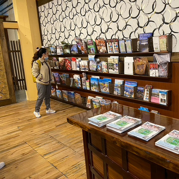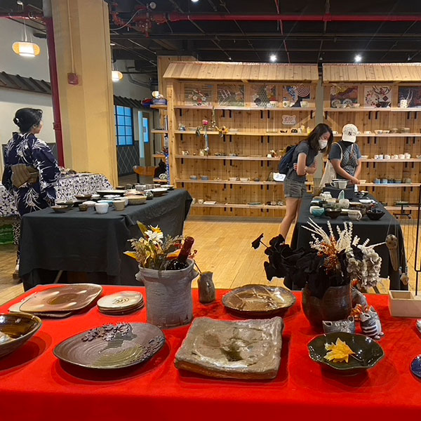 2階には、日本の工芸品やお土産が並ぶ物販エリアがあり、お友達やご家族への贈り物に最適です。