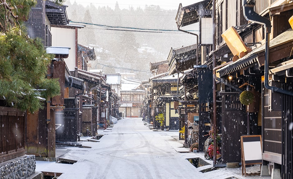 - Gifu & Takayama: Visit the historic sword-making town of Seki and try on a traditional kimono before exploring the paper lantern-lined streets of Mino. Stroll through Takayama’s charming old town and soak in the healing waters of Takayama’s natural onsen. Wander the snowy, storybook village of Shirakawago—one of Japan’s most treasured World Heritage sites.