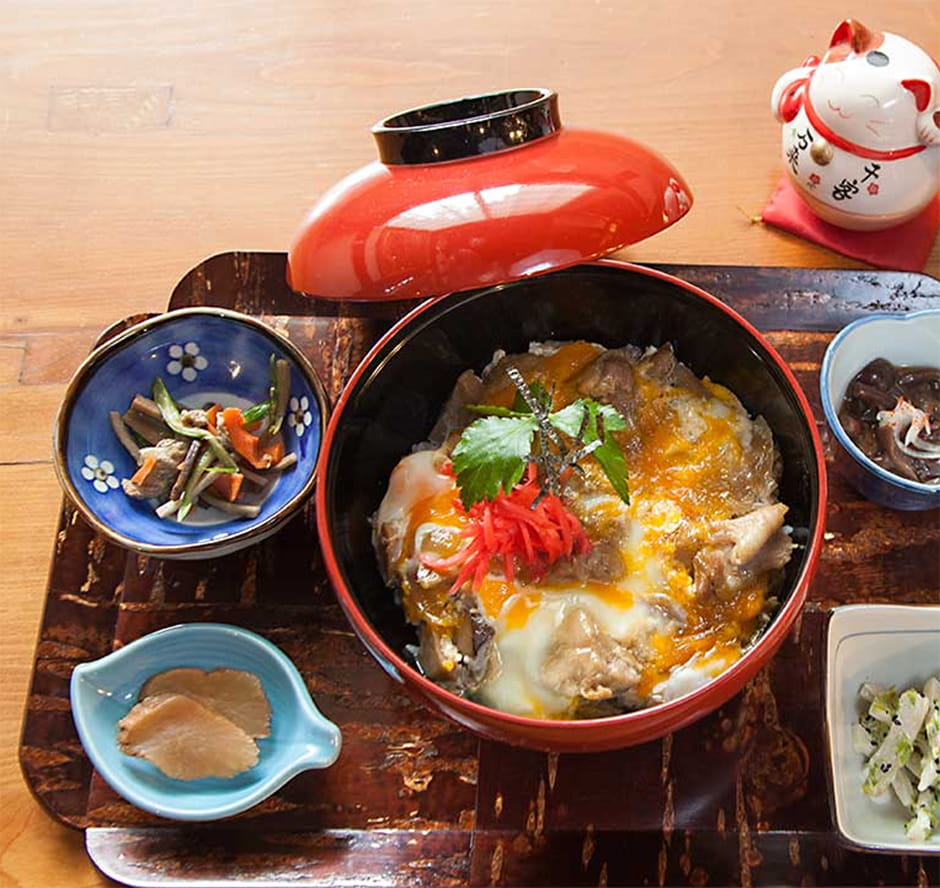 * We will arrange truck delivery to send large lugguge to the hotel in Tokyo - Afternoon-Lunch at The Hyakusuien (oyakodon and nabe/hot-pot set)
