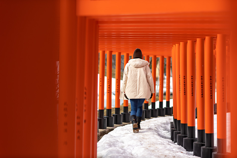 - Takayama Inari Shrine: Vermilion torii gates stand out vividly against a pristine white snowfield. This breathtaking, photogenic view —one of Japan’s finest—can only be experienced in winter.