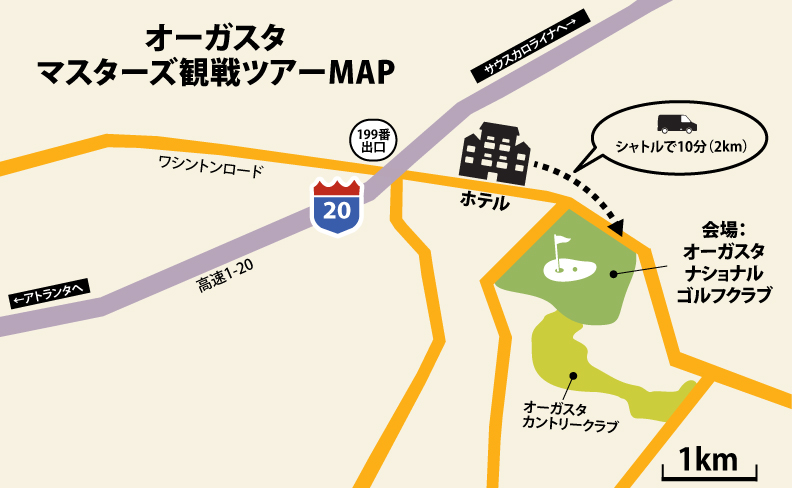 4/11(土)ホテル → 会場(シャトル) 決勝ラウンド3日目観戦(オーガスタ泊)