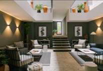 - 中庭は午前6時から午後10時までご利用可能、軽食やご歓談をお楽しみください。